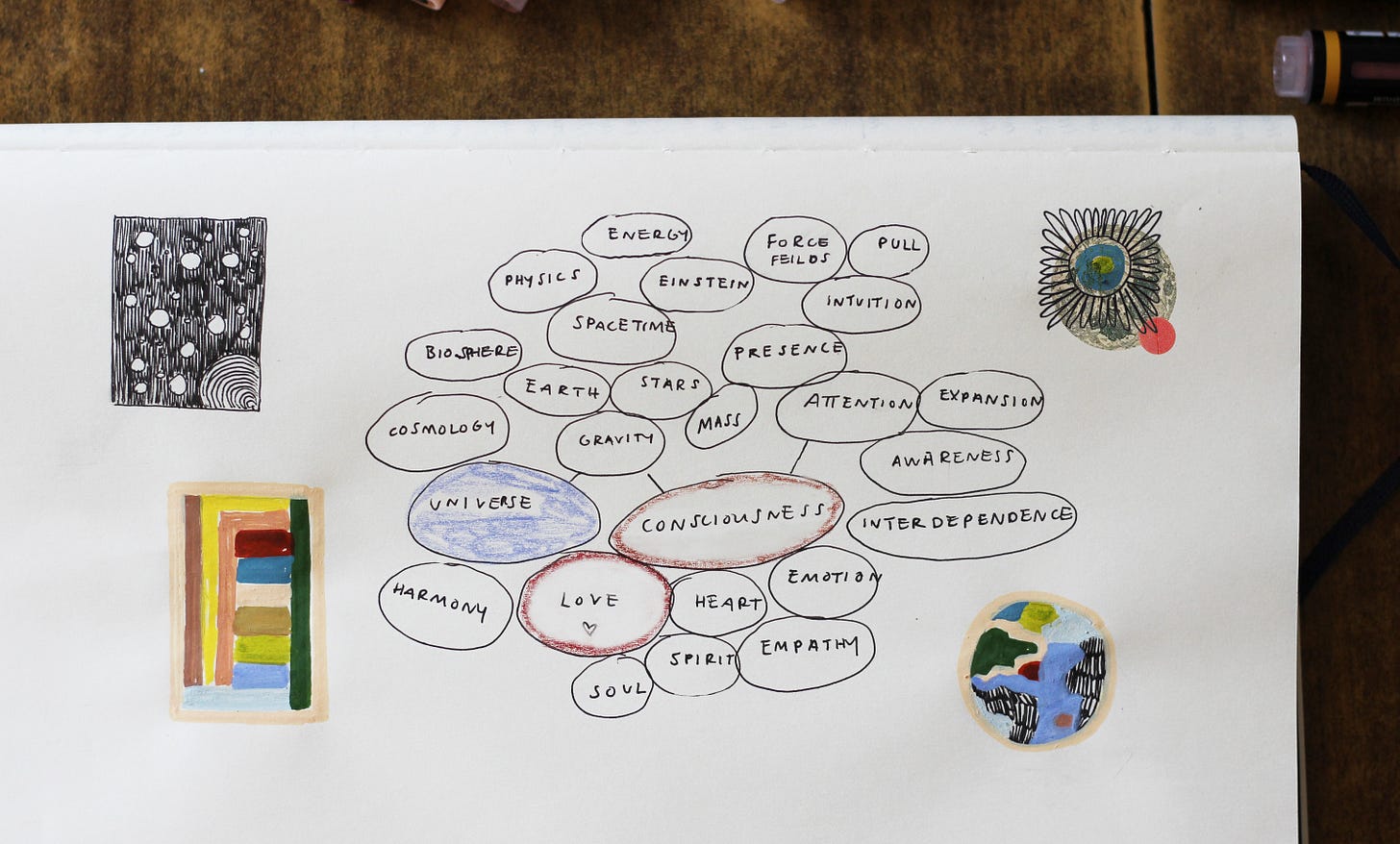 After I wrote out the majority of this essay, I finally understood what I was trying to get to the bottom of. I have been feeling that love, consciousness, soul, physics, gravity (the list goes on) are not separate phenomena. They might be interwoven expressions of one underlying principle, one force, whatever you want to call it. I think of the astrophysicist Natalie M. Batalha saying that when we learn that the atoms that make up our cells were manufactured in the cores of stars, empathy grows because you understand the connectiveness not just of all humans, but of all living creatures.